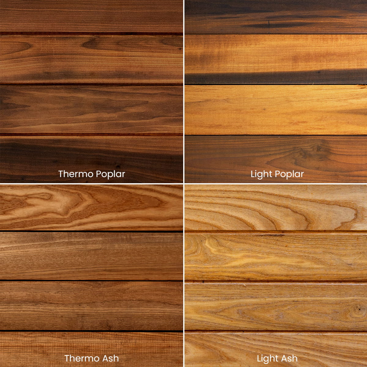 • Thermo-treated clear grade hardwood siding